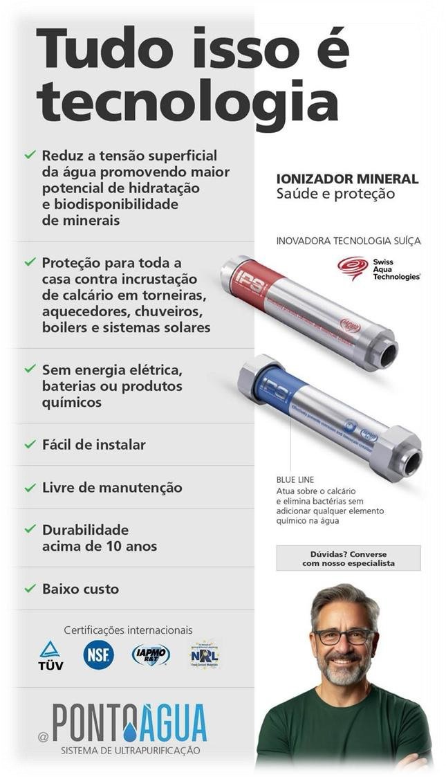 Atua sobre o calcário e elimina bactérias sem adicionar qualquer elemento químico na água.