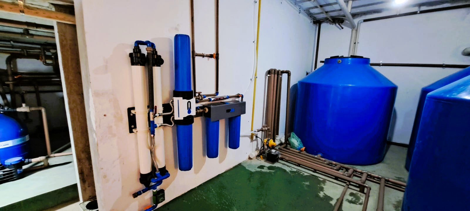 Opção de redução de excessos de cloro e químicas realizada por filtros auxiliares pós membrana ultrafiltrante.