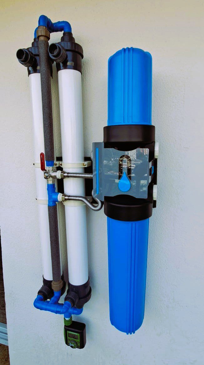 As membranas de Ultrafiltração do Sistema Guardião ll possuem retrolavagem totalmente automatizada. Muito prático de baixa manutenção, exige ponto de energia elétrica, trabalhando apenas com a pressão de água de rede.
